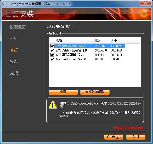 所以示範一下Ati版的安裝方式: